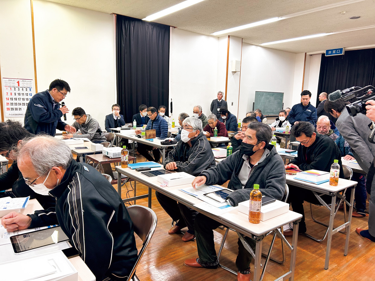 水産業のための漁業者支援サービス「トリトンの矛」の開発を手掛けるオーシャンソリューションテクノロジー(長崎県佐世保市、以下、OST)は今年1月、宇久小値賀漁業協同組合所属の漁業者を対象に、同システムを用いたデジタル力向上の人材育成講座を実施した。全国に先駆けて水産DX(デジタルトランスフォーメーション)の推進に向けた取り組みを同漁協と実施した理由を水上陽介社長は「これまで複数の事業を連携して実施しており、トリトンの矛に対する理解が進んでいるため」と話す。