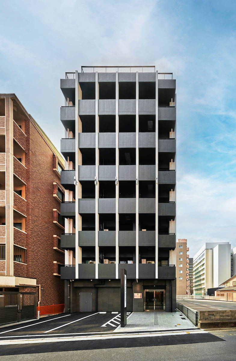 ホテルの名称は「Moat Inside Tenjin」(モート インサイド天神)。7階建て18室の滞在型スマートホテルで、全ての客室にキッチンやドラム式洗濯乾燥機、4台のベッドが備えてある。フロントスタッフも滞在せず、チェックインやチェックアウトはエントランスに設置されたタッチパネルモニターで行う。また、予約や支払い、鍵の開閉もスマートフォンで可能だ。堀内社長は「当社は民泊施設を手掛けており、その稼働が良いことから改めてホテル事業に進出した。モートインサイドとは〝堀内〟の英訳。今後は福岡市博多区東光、佐賀市のJR佐賀駅前で開業を予定している。良い土地があれば、さらに展開していきたい」と意気込む。