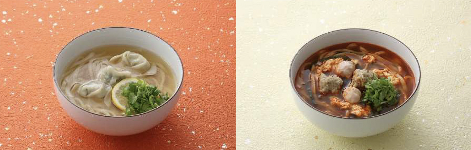 香港店のオープンを記念し、福岡県内の3店舗で11月16日まで特別メニュー「香味 雲呑饂飩(わんたんうどん)」(税込み900円)と「旨辛 XO醤饂飩(じゃんうどん)」(同920円)を提供する。