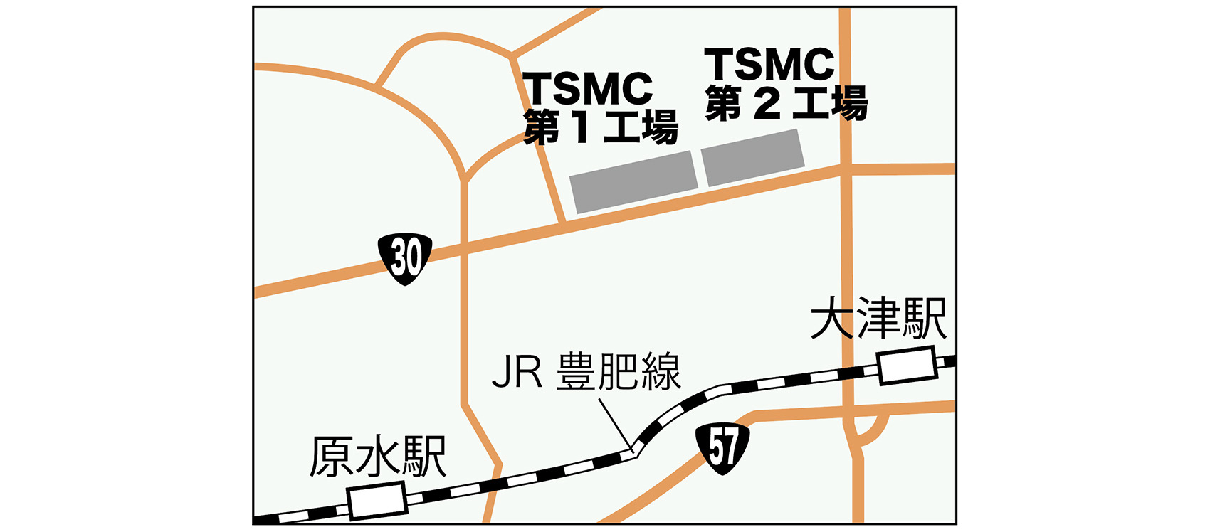 TSMC(台湾積体電路製造)の熊本工場を運営する子会社のJASM(熊本県菊陽町)は10月24日、熊本第2工場建設地の菊陽町と立地協定を締結した。第1工場より先端技術となる回路線幅6ナノ(ナノは10億分の1)メートルの半導体を主に製造する計画。2027年12月末の操業開始を目指す。投資額は約139億ドル(約2兆1000億円)で、国が最大7320億円、熊本県も独自に最大15億円を補助する。