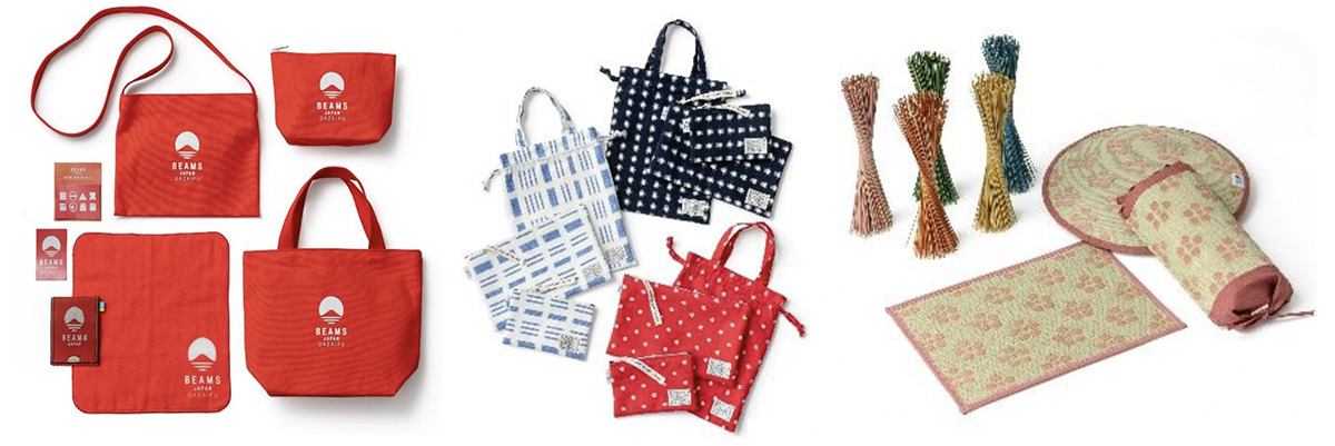 木造2階建ての町屋風の建物で、太宰府天満宮の参道近くに立地。福岡県の服飾雑貨店やインテリアショップとコラボした久留米絣(かすり)のポーチや巾着トート、イ草を使用したござ商品やアロマグッズのほか、梅の木を連想する「紅梅」色の同店オリジナルアイテムを販売する。2階では、ワークショップなどのイベント開催を検討しているという。営業時間は午前10時から午後5時。